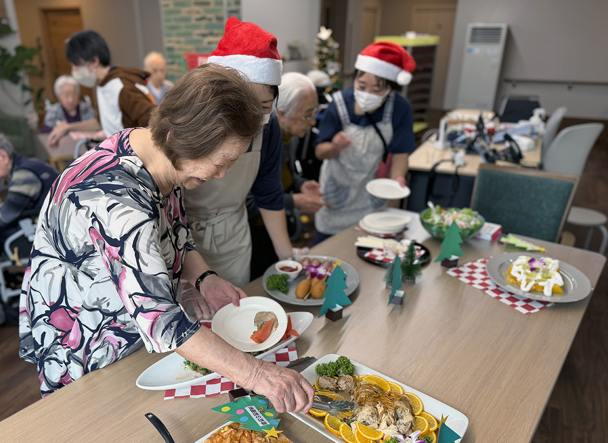 今年のクリスマスは、入居者様と厨房のコラボ企画をおこないました。